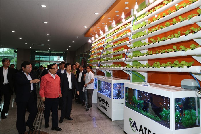 (진주=포커스뉴스) 이동필 농림축산식품부 장관이 24일 경남 진주시 경남도농업기술원 첨단농업에서 열린스마트 팜 확산 상반기 점검회의에 참석전 경남도농업기술원 'ATEC 첨단온실' 스마트 팜 재배 시설을 둘러보고 있다. <사진제공=농림축산식품부>