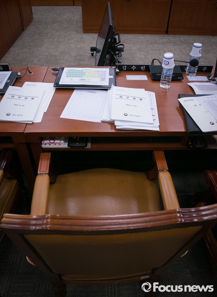 (서울=포커스뉴스) 24일 오후 서울 여의도 국회에서 열린 산업통상자원위원회 전체회의에 불참한 김수민 국민의당 의원의 빈 자리가 보이고 있다. 리베이트 수수 의혹을 받고 있는 김 의원은 전날 검찰에 출석해 조사를 받았다.