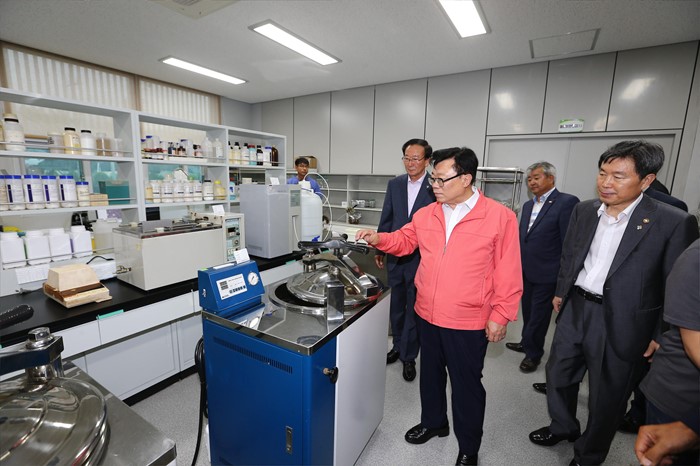 (고성=포커스뉴스) 이동필 농림축산식품부 장관이 24일 경남 고성군 농업기술센터에서 재정부 법제처장 등이 참석한 가운데 규제개혁 현장포럼이 열렸다. 이 장관이 포럼에 앞서 고성군 농업기술센터 시설을 둘러보고 있다. <사진제공=농림축산식품부>