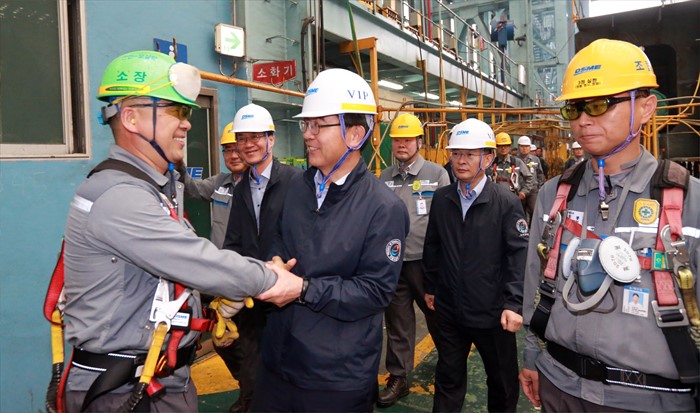 (거제=포커스뉴스) 이기권 고용노동부 장관은 24일 경남 거제 대우조선해양 노사와 간담회를 갖고 업황 부진으로 어려움을 겪는 조선업 종사자 의견을 청취했다.