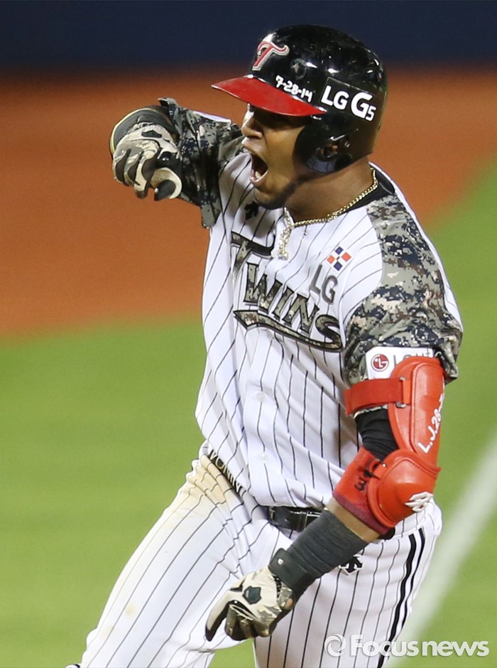 (서울=포커스뉴스) 24일 서울 잠실구장에서 열린 2016 프로야구 넥센-LG 경기 8회말 2사 1,2루에서 LG 히메네스가 역전 3점 홈런을 치고 3루를 돌며 환호하고 있다.