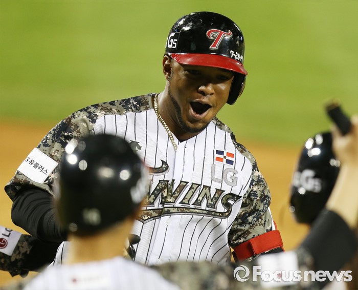 △ 역점 홈런치고 환호하는 LG 히메네스