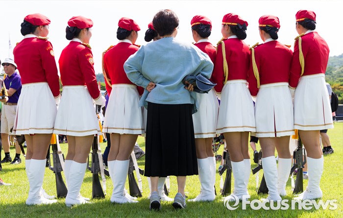 (서울=포커스뉴스) 26일 오후 서울 동작구 국립서울현충원 겨레얼마당에서 국방부 군악대와 의장대가 호국보훈의 달을 맞아 전통의장 및 퍼레이드 시범을 선보이고 있다.