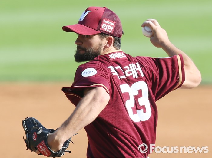 (서울=포커스뉴스) 26일 서울 잠실구장에서 열린 2016 프로야구 넥센-LG 경기에서 1회말 넥센 선발투수 맥그레거가 투구하고 있다.