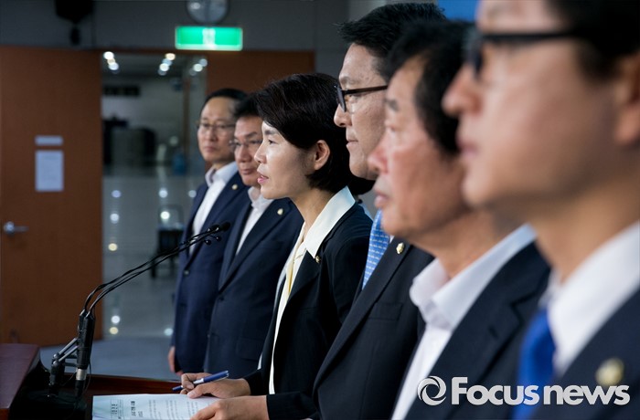 | △ 최저임금 관련 기자회견하는 더민주 환노위원들 |