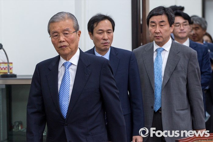 (서울=포커스뉴스) 김종인(왼쪽) 더불어민주당 비상대책위 대표와 우상호(왼쪽 두 번째) 원내대표를 비롯한 비대위원들이 27일 오전 서울 여의도 국회에서 열린 비상대책위원회의에 참석하기 위해 회의실로 들어서고 있다.