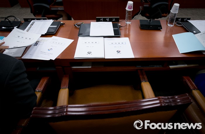 (서울=포커스뉴스) 27일 오전 서울 여의도 국회에서 열린 법제사법위원회 전체회의에 법사위원직을 사퇴한 서영교 더불어민주당 의원의 빈 자리가 보이고 있다.