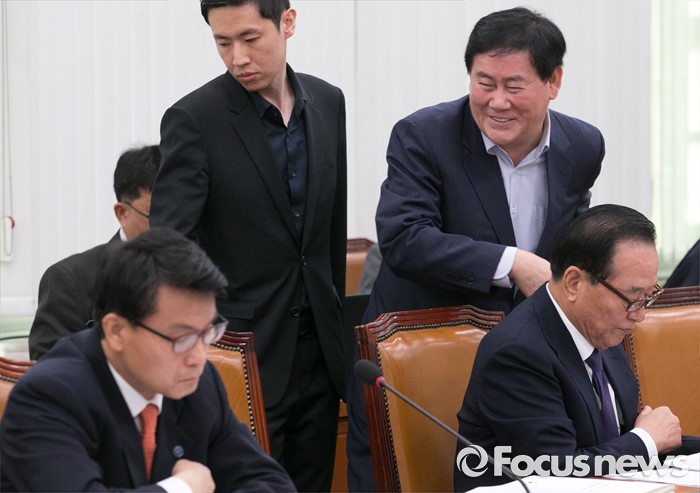 (서울=포커스뉴스) 27일 오전 서울 여의도 국회에서 열린 외교통일위원회 전체회의에 참석한 서청원(오른쪽부터), 최경환, 윤상현 새누리당 의원이 참석하고 있다.