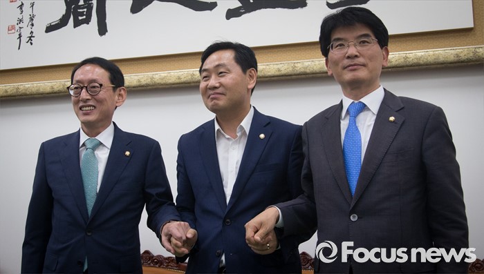 | △ 손 맞잡은 3당 원내수석부대표 |