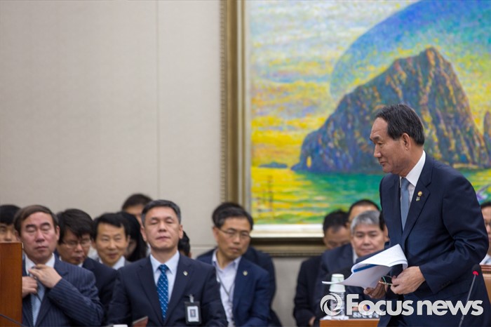 (서울=포커스뉴스) 박승춘 국가보훈처장이 28일 오전 서울 여의도 국회에서 열린 정무위원회에 참석해 업무보고를 하기 위해 단상으로 이동 하고 있다.
