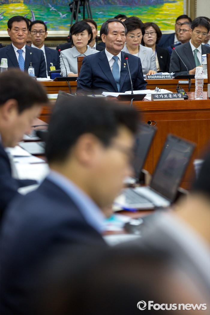 (서울=포커스뉴스) 박승춘 국가보훈처장이 28일 오전 서울 여의도 국회에서 열린 정무위원회에 참석해 위원들에게 질의 받고 있다.