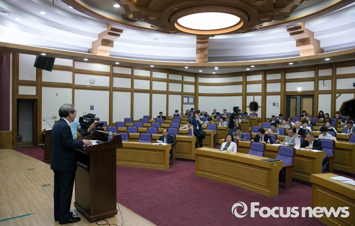 (서울=포커스뉴스) 28일 오전 서울 여의도 국회 의원회관에서 열린 '한국적 제3의 길' 창립 기념 초청 강연, '한국경제와 20대 국회가 가야할 길'에 참석한 정운찬 동반성장연구소 이사장이 강연을 하고 있다.