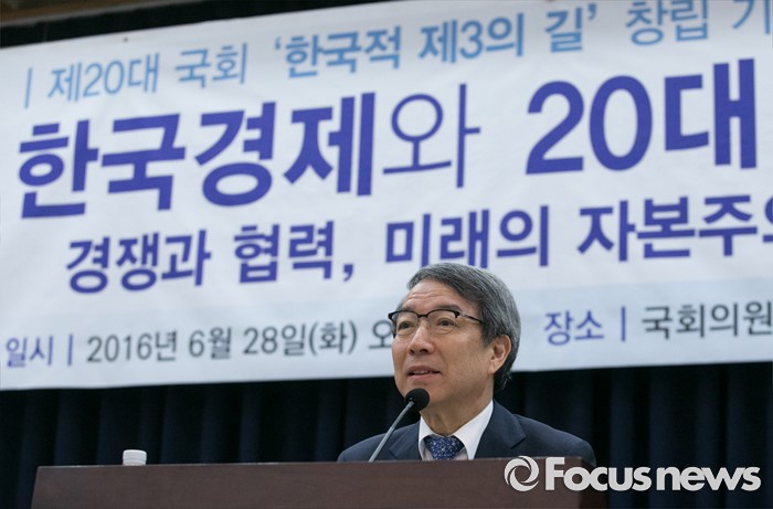 (서울=포커스뉴스) 28일 오전 서울 여의도 국회 의원회관에서 열린 '한국적 제3의 길' 창립 기념 초청 강연, '한국경제와 20대 국회가 가야할 길'에 참석한 정운찬 동반성장연구소 이사장이 강연을 하고 있다.