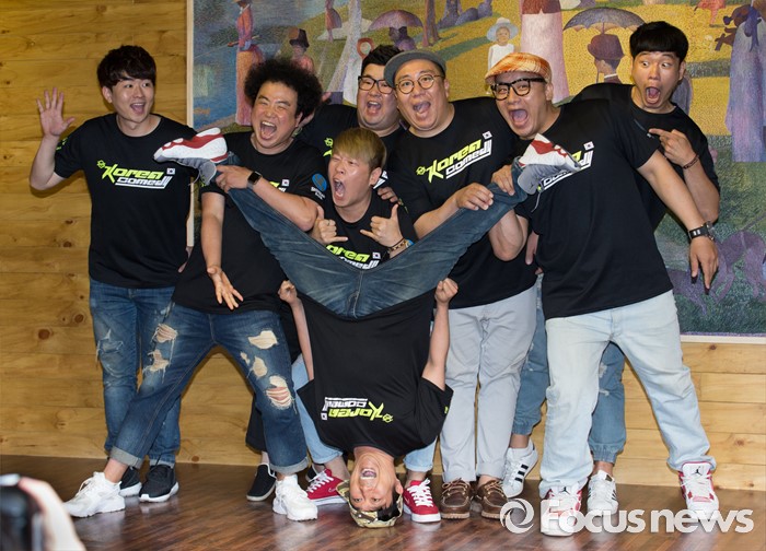 (서울=포커스뉴스) 28일 오후 서울 마포구 신한류플러스에서 여린 제1회 홍대 코미디위크 기자간담회에 참석한 개그맨 옹알스팀이 포즈를 취하고 있다.