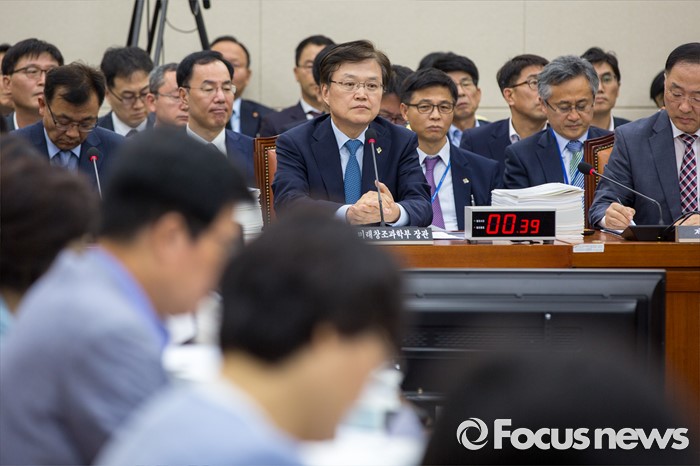 (서울=포커스뉴스) 최양희 미래창조과학부 장관이 28일 오후 서울 여의도 국회에서 열린 미래창조과학방송통신위원회 전체회의에 참석해 위원들에게 질의 받고 있다.