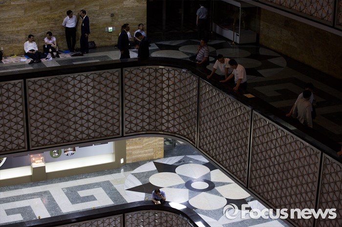(서울=포커스뉴스) 28일 오후 서울 여의도 국회에서 상임위원회에 업무 지원을 나선 관계기관 공무원들이 전체회의가 열리는 회의실 밖을 지키며 업무를 보고 있다.