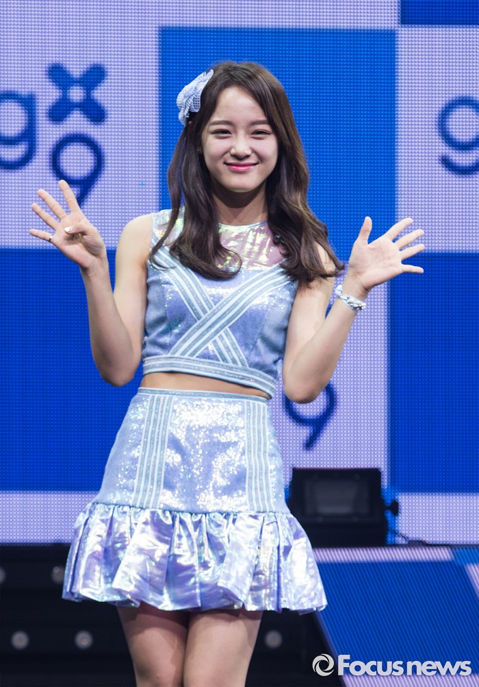 (서울=포커스뉴스) 28일 오후 서울 광진구 예스24 라이브홀에서 열린 걸그룹 구구단의 데뷔 쇼케이스에 참여한 멤버 세정이 포토타임을 갖고 있다.