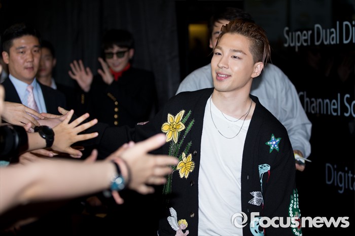 (서울=포커스뉴스) 28일 오후 서울 CGV 영등포점에서 영화 '빅뱅 메이드' VIP 시사회에 참석한 빅뱅 태양이 포토월로 향하고 있다.
