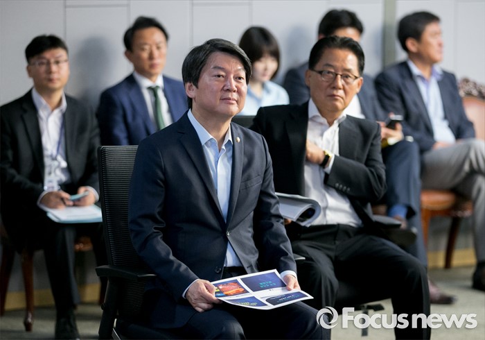 (서울=포커스뉴스) 29일 오전 서울 여의도 국회 의원회관에서 열린 국민의당 정책역량강화 워크숍에 참석한 안철수(왼쪽) 상임공동대표와 박지원 원내대표 등 의원들이 송호근 서울대 교수의 강연을 듣고 있다.