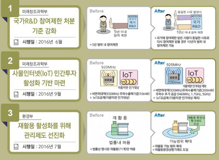 ▲관련 규제 정비를 통한 IoT의 본격적인 확산 기반을 마련하기 위해서다. 오는 9월부터 IoT 관련 주파수 출력기준이 개선되고, IoT 요금인가제 완화 등 신규서비스 출시 관련 제도가 개선될 예정이다.