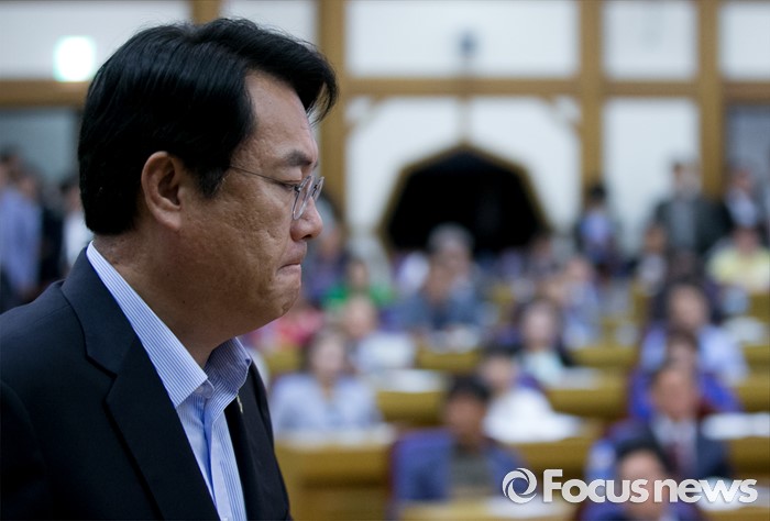 (서울=포커스뉴스) 29일 오전 서울 여의도 국회 의원회관에서 열린 새누리당 중앙위원회 혁신을 위한 대토론회에 참석한 정진석 원내대표가 축사를 위해 단상으로 향하고 있다.