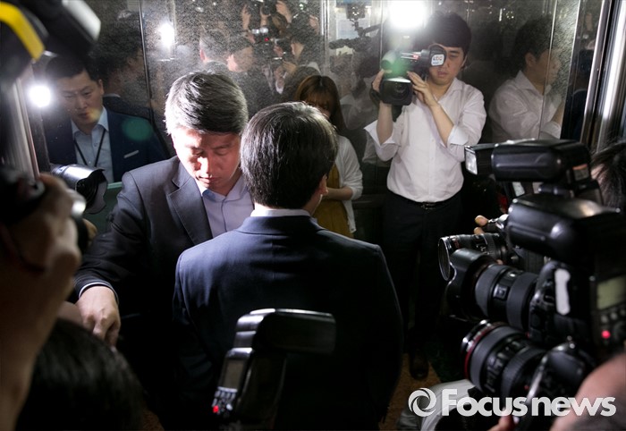 (서울=포커스뉴스) 안철수 국민의당 상임공동대표가 29일 오전 서울 여의도 국회에서 리베이트 수수 의혹 사건과 관련 대표직 사퇴 발표 후 승강기에 올라 이동하고 있다.