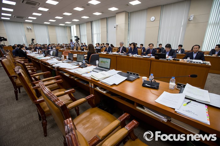 (서울=포커스뉴스) 29일 오전 서울 여의도 국회에서 열린 '안전행정위원회 전체회의'에서 더불어민주당 위원들이 강신명 경찰청장에게 살수차 공개를 요구, 질의응답을 거부한 채 퇴장해 회의가 난항을 겪고 있다.