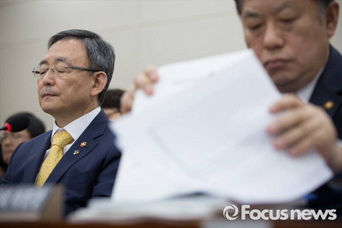 (서울=포커스뉴스) 최성준 방송통신위원장이 29일 오전 서울 여의도 국회에서 열린 미래창조과학방송통신위원회 전체회의에 출석해 의원들 질문을 듣고 있다.