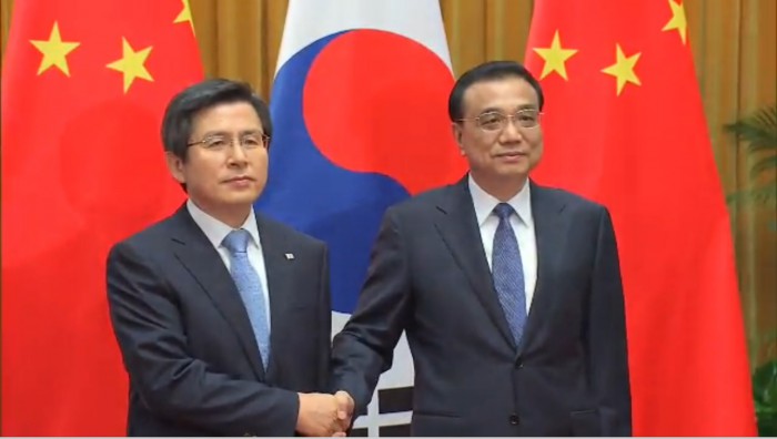 지난해 서울 회담에 이어 7달 만에 리커창 총리를 만난 황교안 총리는 "한중관계는 지난 3년간 상호 존중과 신뢰를 바탕으로 큰 발전을 이뤘다"고 인사했다. 이에 리커창 총리는 "두 나라가 동북아 평화와 안정을 위해 지속적으로 노력하기를 바란다"고 화답했다.