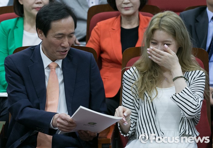 | △ 대화하는 우상호 원내대표와 가수 배다해 |