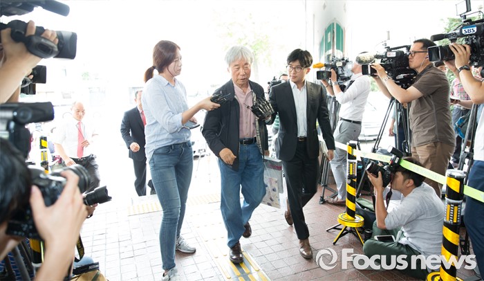 (서울=포커스뉴스) '위작 논란'에 휩싸인 현대미술가 이우환(80) 화백이 29일 오후 서울지방경찰청 지능범죄수사대로 최종 입장을 밝히기 위해 출석하고 있다.