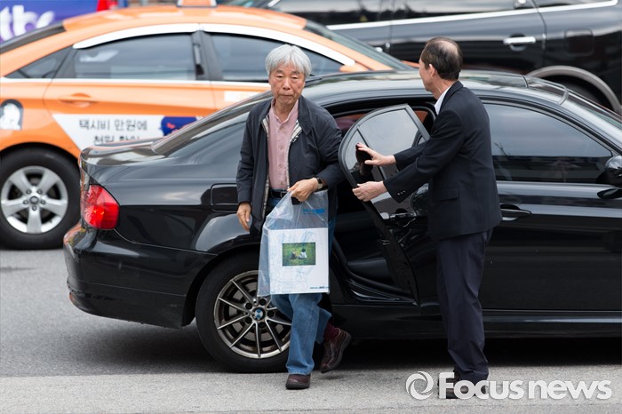 (서울=포커스뉴스) '위작 논란'에 휩싸인 현대미술가 이우환(80) 화백이 29일 오후 서울지방경찰청 지능범죄수사대로 최종 입장을 밝히기 위해 출석하고 있다.