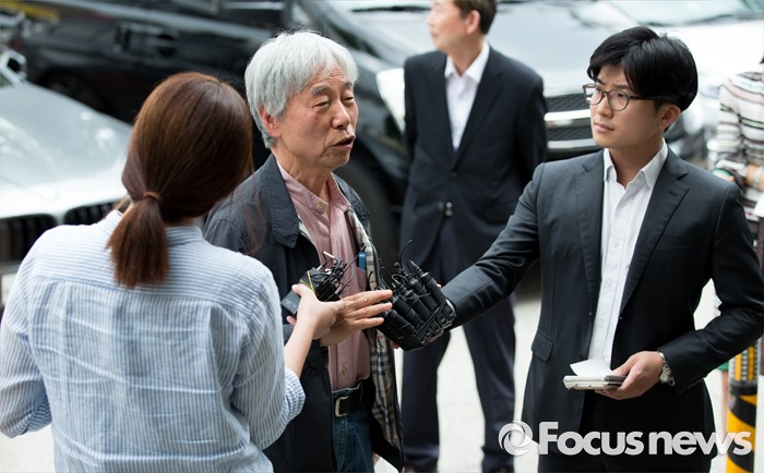 (서울=포커스뉴스) '위작 논란'에 휩싸인 현대미술가 이우환(80) 화백이 29일 오후 서울지방경찰청 지능범죄수사대로 최종 입장을 밝히기 위해 출석하고 있다.