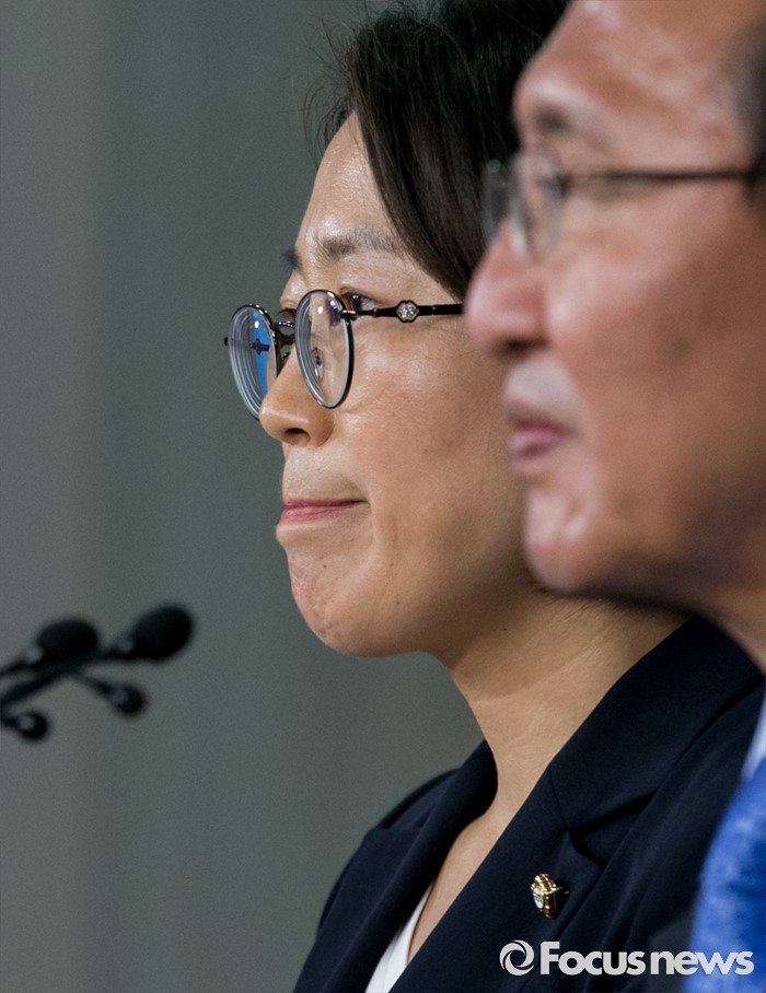 (서울=포커스뉴스) 29일 오후 서울 여의도 국회 정론관에서 미래창조과학방송통신위원회 재배정을 요구하며 농성에 들어갔던 추혜선(왼쪽) 정의당 의원과 노회찬 원내대표가 농성을 해제하고 외교통일위원회 배정을 받아들이는 내용의 기자회견을 하고 있다.