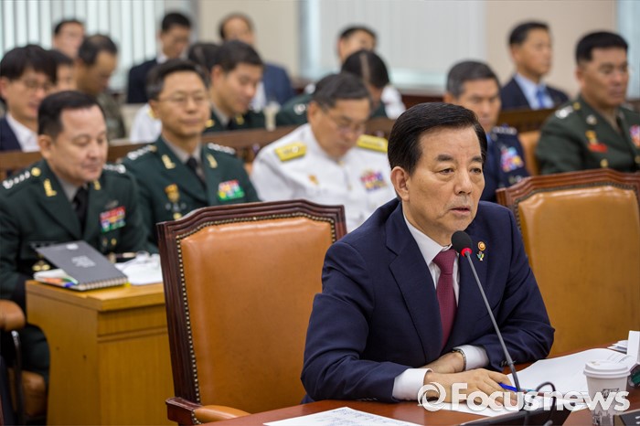 (서울=포커스뉴스) 한민구 국방부 장관이 29일 오후 서울 여의도 국회에서 열린 '국방위원회 전체회의'에 참석해 질의응답 하고 있다.