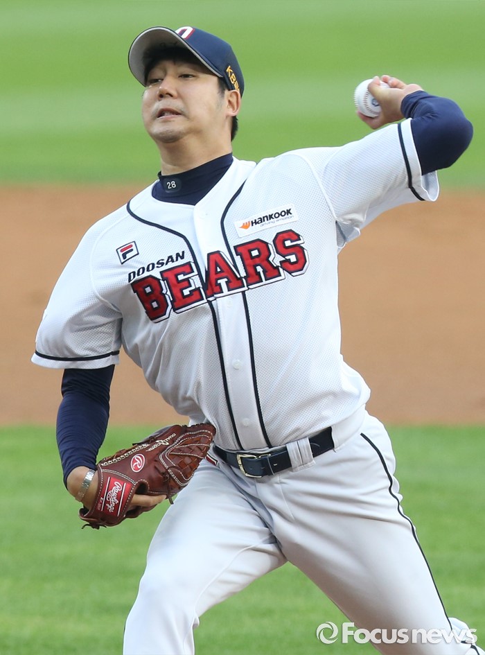 (서울=포커스뉴스) 29일 서울 잠실구장에서 열린 2016 프로야구 NC-두산 경기에서 1회초 두산 선발투수 장원준이 투구하고 있다.