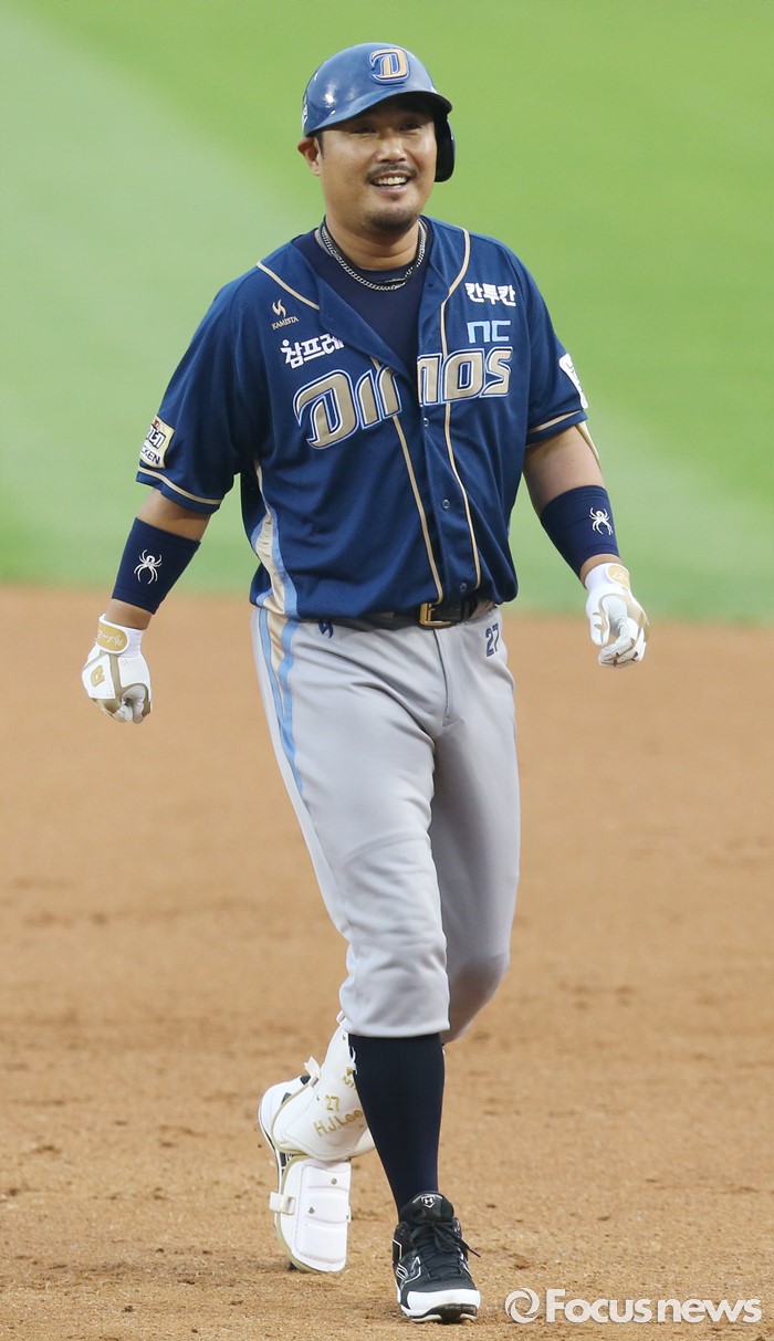 (서울=포커스뉴스) 29일 서울 잠실구장에서 열린 2016 프로야구 NC-두산 경기 3회초 1사 1,2루에서 NC 이호준이 1타점 우전 적시타를 날리고 기뻐하고 있다.