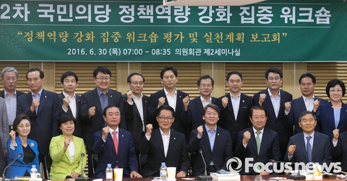 (서울=포커스뉴스) 30일 오전 서울 여의도 국회 의원회관에서 국민의당 22차 집중역량강화 워크숍을 마친 박지원 비대위원장, 안철수 전 대표 등 의원들이 기념촬영을 하고 있다.