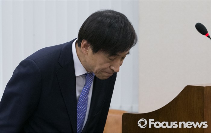 (서울=포커스뉴스) 30일 오전 서울 여의도 국회에서 열린 기획재정위원회 전체회의에 참석한 이주열 한국은행 총재가 업무보고에 앞서 인사하고 있다.