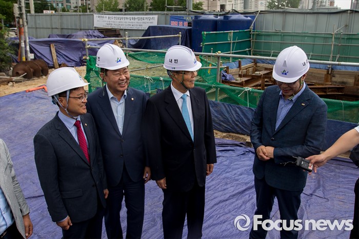 (서울=포커스뉴스) 김종인 더불어민주당 비상대책위 대표가 30일 오전 서울 용산구 한강로 빗물펌프장을 방문해 공사현장을 둘러 보고 있다.