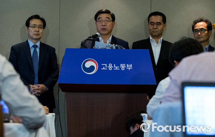 (서울=포커스뉴스) 30일 오전 서울 중구 프레스센터에서 이기권 고용노동부 장관이 조선업 특별고용지원업종 지정안 심의결과를 발표하고 있다.