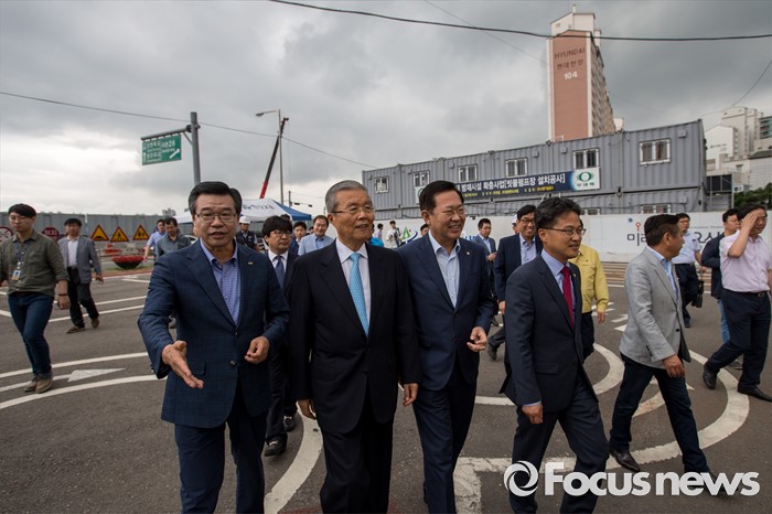 | △ 빗물펌프장으로 이동하는 김종인 대표 |