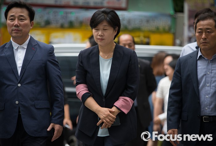 (서울=포커스뉴스) 가족채용 논란에 휩싸인 서영교 더불어민주당 의원이 30일 오전 서울 여의도 당사에서 열린 당무감사원 회의에 출석하고 있다. 이날 당무감사원 회의에서는 서 의원에 대한 징계 여부를 결정한다.