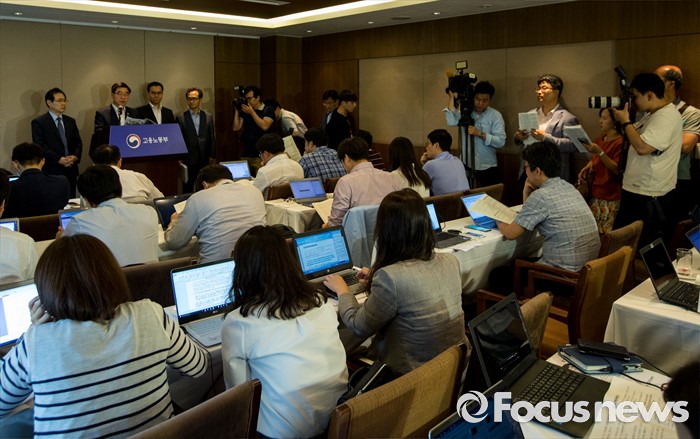 (서울=포커스뉴스) 30일 오전 서울 중구 프레스센터에서 이기권 고용노동부 장관이 조선업 특별고용지원업종 지정안 심의결과를 발표하고 있다.