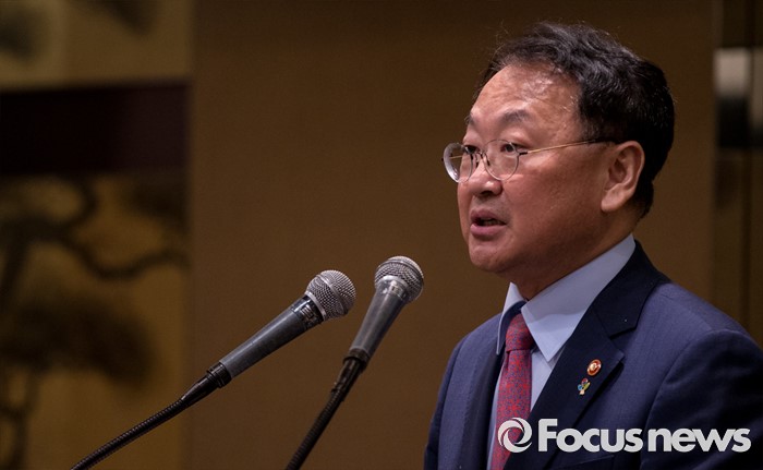 (서울=포커스뉴스) 유일호 경제부총리 겸 기획재정부 장관이 30일 오후 서울 용산구 그랜드하얏트 서울에서 열린 주한미국상공회의소 초청 오찬간담회에 참석해 기조연설을 하고 있다.