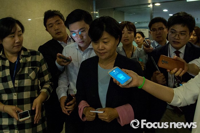 (서울=포커스뉴스) 친인척을 보좌진으로 채용하는 등 여러 논란으로 위기에 놓인 서영교 더불어민주당 의원이 30일 오후 서울 여의도 국회에서 기자회견을 마친 뒤 취재진에게 질문을 받고 있다.