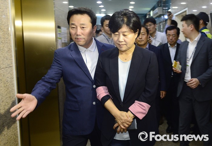 (서울=포커스뉴스) 가족채용 논란에 휩싸인 서영교 더불어민주당 의원이 30일 오전 당무감사원 회의에서 논란을 소명하기위해 서울 여의도 더민주 당사로 들어가고 있다.