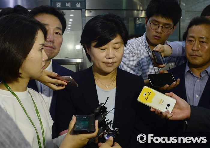 (서울=포커스뉴스) 가족채용 논란에 휩싸인 서영교 더불어민주당 의원이 30일 오전 당무감사원 회의에서 논란을 소명하기위해 서울 여의도 더민주 당사로 들어가고 있다.