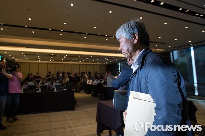 (서울=포커스뉴스) 위작 논란에 휩싸인 이우환 화백이 30일 오후 서울 중구 웨스틴조선 호텔에서 기자회견을 마치고 자리를 나서고 있다.