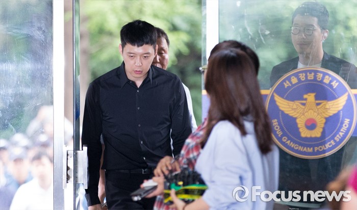 (서울=포커스뉴스) 성폭행 혐의로 4명의 여성에게 연이어 피소된 가수 겸 배우 박유천이 30일 오후 서울 강남경찰서로 출석하고 있다.